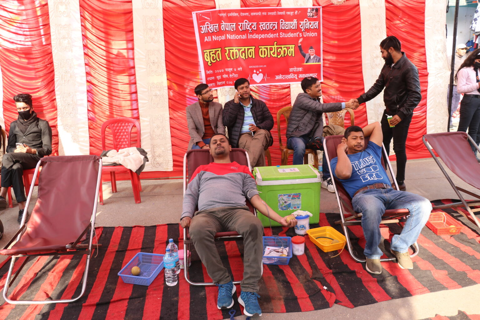 अनेरास्ववियू मकवानपुरले भोली हेटौंडामा बृहत रक्तदान कार्यक्रम गर्दै